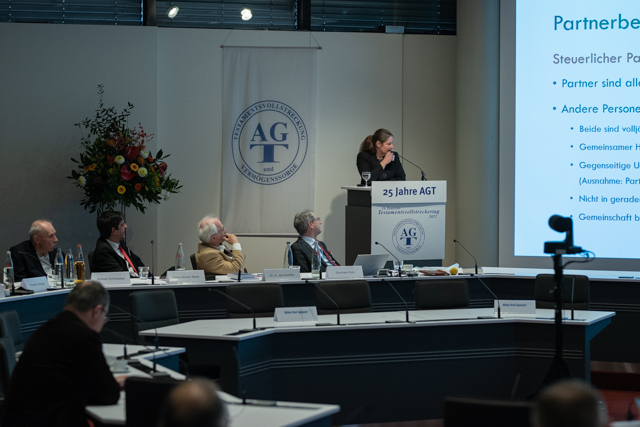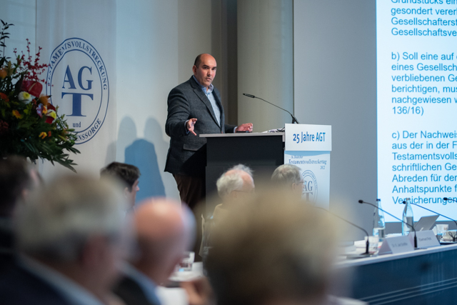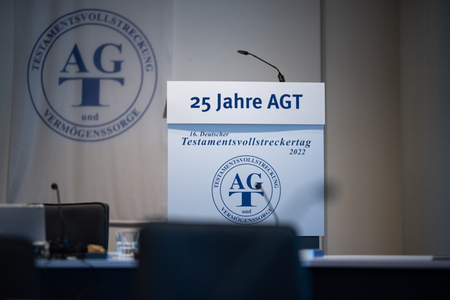 Das diesjährige Jubiläum „25 Jahre Arbeitsgemeinschaft Testamentsvollstreckung und Vermögenssorge (AGT) e.V. – Von der Idee einer Interessensgemeinschaft zur deutschlandweit führenden Institution für Testamentsvollstrecker“ feierten 290 Teilnehmende in diesem Jahr am 15. November entweder vor Ort in Bonn oder auch virtuell am Bildschirm. Diesen unvergesslichen Tag läutete der Vorstandsvorsitzende der AGT, Rechtsanwalt Eberhard Rott, mit einer allgemeinen Begrüßung sowie der Auszeichnung des 500. Vereinsmitglieds der AGT, Prof. Dr. Maximilian A. Werkmüller, LL.M., ein. Diesem wurde feierlich eine Ehrenurkunde überreicht.